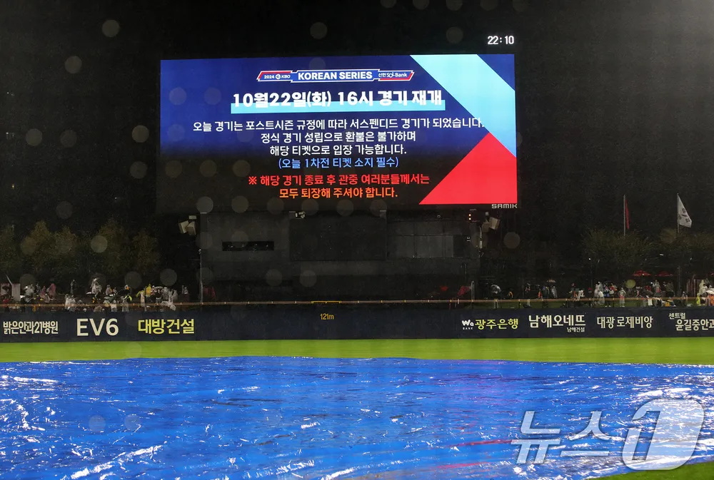 사진은 2024년 10월 21일 한국시리즈 1차전 삼성 VS KIA, 우천으로 서스펜디드 게임이 선언됐습니다.
